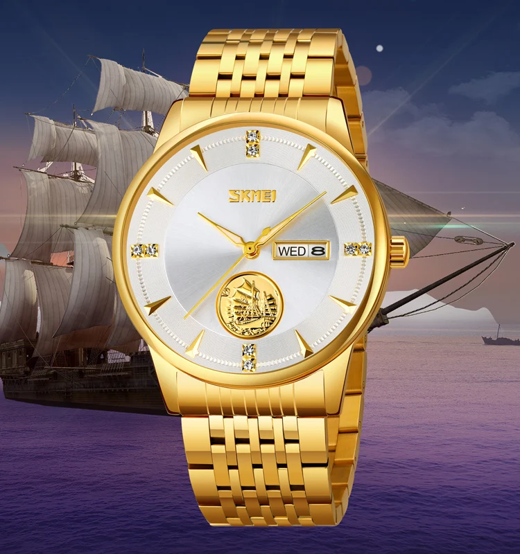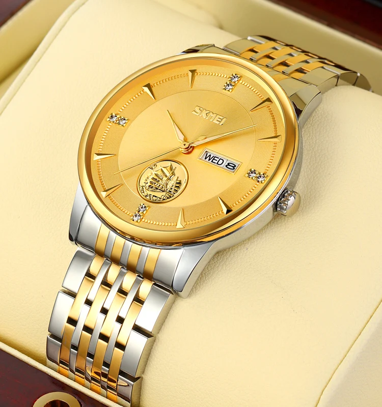 SKMEI 9309 Quartz Movement Luxury Watch Stainless Steel Band Glass Dial Water Resistant 3BAR 42mm Pointer